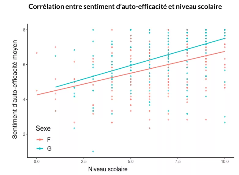 • disparités garçons / filles : en moyenne, les garçons expriment moins de craintes et affichent un sentiment d’auto-efficacité plus élevé que les filles.